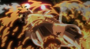 キリサメはカルシウムカーバイドの入った袋を飛行機に対して投擲、カルシウムカーバイドから生じた気体を吸い込んだ飛行機のエンジンはノッキングを起こし墜落します。