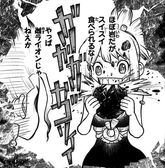 Z=91で千空が作った黒焦げの固いパンですが、千空や龍水はマズくて食べられませんでしたが。コハク達、石神村の住民には十分美味しいパンのようで、美味しいと喜んで食べています。特にコハクは岩のように固いパンを、苦も無く食べています。