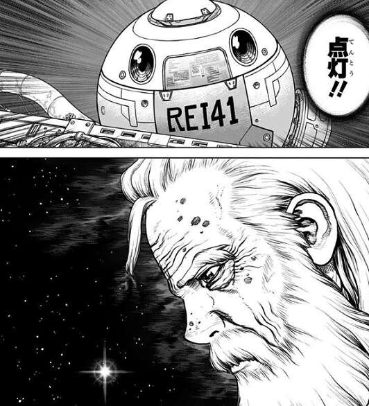 ISSを維持する為にレイが色々やっているうちに、石化から20年が経過しました。地球では、老いた百夜が子供達に宇宙の話や化学の話をしながら、人類がいつか復活してまた宇宙に向かう時に必要となる希少金属を地道に集めていました。しかし、年を取った百夜は体力が尽きてしまい川で倒れてしまいますが、その時レイが点灯させたISSの灯りが百夜にも届きます。