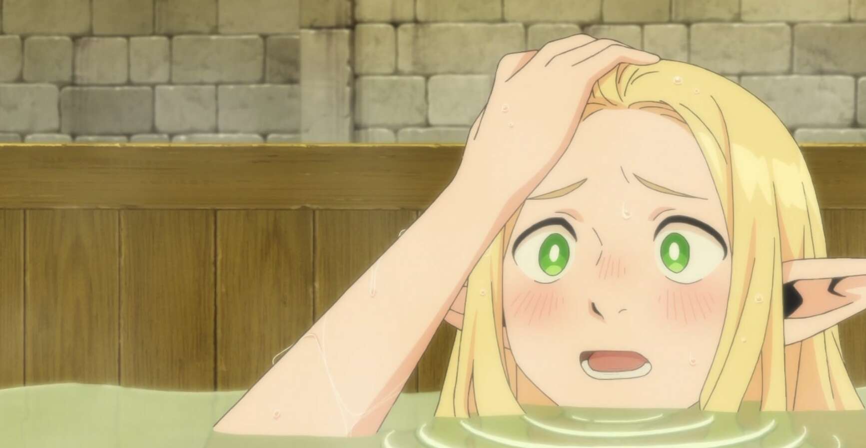 マルシルはファリンをお風呂に入れて、体を洗ってあげながらお肌が綺麗に再生できているか確認をします。ファリンは死んだ時の事や、その後の事を気にして、特に地面に描かれていた魔法陣がよくない物のように見えると心配します。しかし、マルシルは大丈夫と言い、魔法陣も後でみんなで消せば大丈夫!と言い切ります。
