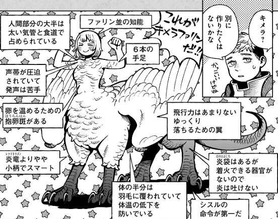 ライオスとしてはキメラはあまり作りたくないようで、理由はキメラの体の構造は無駄が多いそうです。キメラファリンの体はもっと改善できると、ライオスはどんどん頭の中でキメラファリンを改造していきますが…。