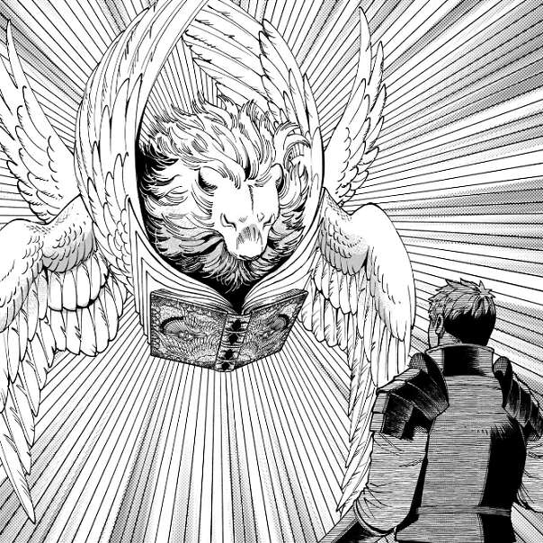 狂乱の魔術師の家でマルシルが本を見つけますが、マルシルはこの本に翼獅子を封印していると推測します。しかし、ライオスがいくら力を込めて本は開かず、マルシルが封印を解除しようとします。マルシルの杖、アンブロシアで本を覆う分厚い魔力の封を吸い上げ、薄くなったところを一気にこじ開け、本の封印の解除に成功します。しかし、本から出てきた翼獅子は頭だけで、封印が解かれたのは半分だけでした。