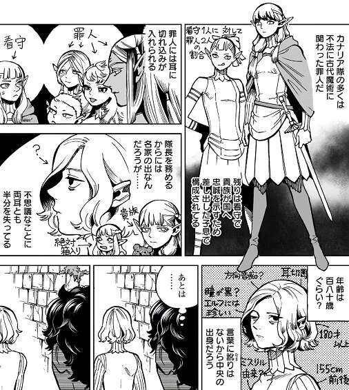 穴から落ちてしまったカブルーは、一緒に落ちてしまったカナリア隊 隊長ミスルンと行動を共にする事になります。迷宮の謎を知りたいカブルーはこれを機に、ミスルンがどんな人物なのか、取り入る隙はないか探ろうとします。そして、長命種たちが隠匿したがる迷宮の謎を明かそうと考えます。