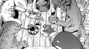 描き下ろし漫画では、実家で飼っていた犬に関する命名についてです。ライオスは父親との仲は微妙だったようで、父親が犬につけた名前の由来を知らなかったようです。マルシルに言われて、初めて知ったようです。
