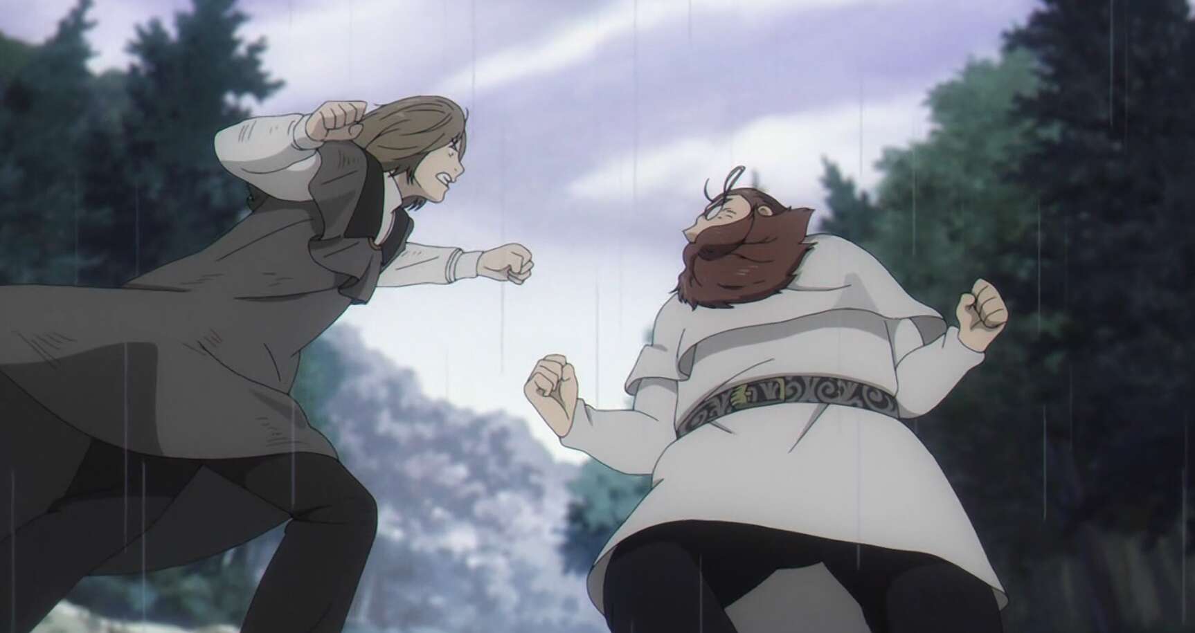 リヒターに木を折ってもらい脱出したデンケン組ですが、デンケンとリヒターは魔力切れで、ラオフェンもジルヴェーアを使えるほど魔力が残っておらず、リヒターとラオフェンは第一次試験を諦めます。しかし、デンケンだけは諦めずシュティレを持つ別パーティーを探し当てます。仲間が死に既に合格の道が閉ざされたパーティーですが、シュティレを大事に抱えていて、デンケンはこのパーティーからシュティレを力ずくで奪おうとします。デンケンはリヒターに腹を括れと言い、シュティレを持つパーティーに殴り合いを挑みます。