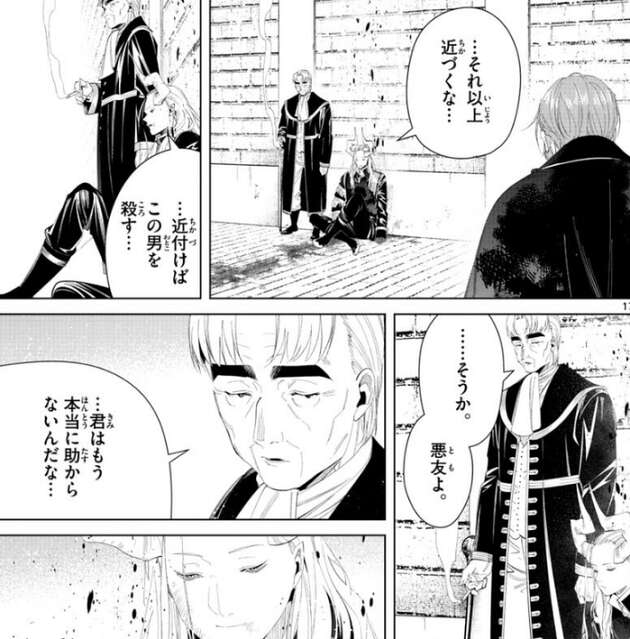 マハトと相打ちになったデンケンはその場に倒れてしまいます。一方、胸に穴が開くほどの重傷を負ったマハトは、フリーレンとの戦いに備えて立て直そうと、その場を離れます。