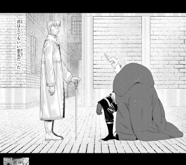 自問自答しながら歩くマハトの前に、黄金の呪いから解放され元に戻ったグリュックが現れます。92話で黄金になって以来、50年ぶりに二人は会話をしますが、グリュックの呼びかけにマハトは50年前と変わらず、膝をついてグリュックの呼びかけに答えます。