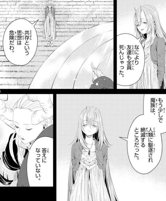 人類との大戦争は何も楽しくなかった、友達も全員死んじゃった、とソリテールは言い、共存という思想は危険だわ、とマハトに忠告します。もう少しで魔族は、人類に駆逐され絶滅するところだった、とソリテールは言いますが、マハトは、答えになっていない、と反論します。