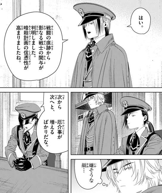 魔導特務隊の隊員から、戦闘の痕跡から影なる戦士の関与が判明したと報告を受けてカノーネは先ほどのつぶやきを発したようです。次から次へと、厄介事が増えるばかりとカノーネは不機嫌な様子で、警備を強化するように隊員に指示を出します。