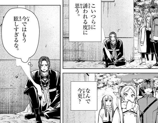 フリーレン達は、ザインを冒険に誘う事を諦めず、その後も毎日ザインを冒険に勧誘します。しかし、ザインはなんで今更?今ではもう眩しすぎるな、と冒険に行く気になれないでいます。