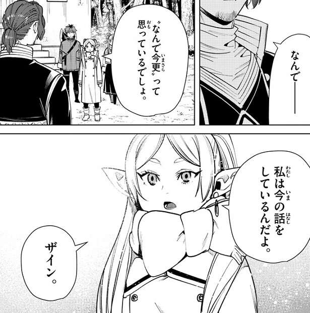 なんで今更、とザインは言いかけますが、フリーレンは、私は今の話をしてるんだよ、とザインに話しかけます。その言葉は昔、フリーレンが勇者ヒンメルから言われた言葉でした。