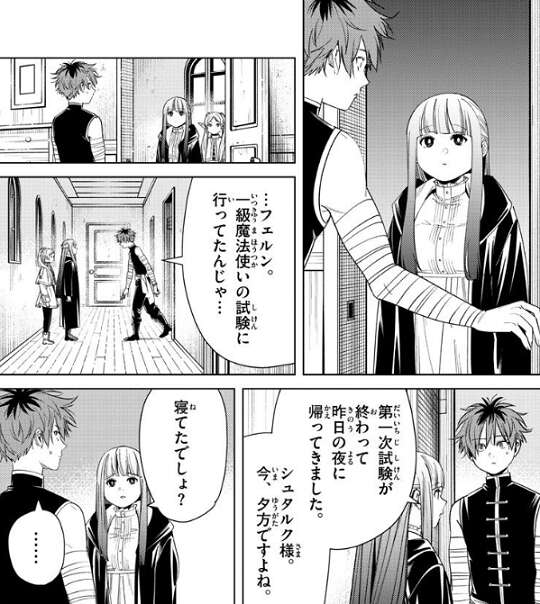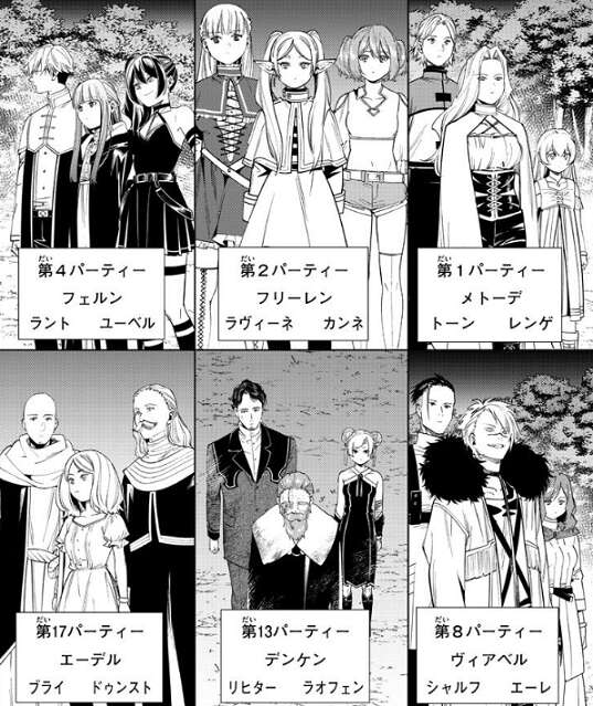 第一次試験の合格者は6パーティーで、フリーレンの第2パーティーやフェルンの第4パーティーが残っています。第二次試験は3日後で、詳細は追って通達するとゲナウから言われ、解散となります。