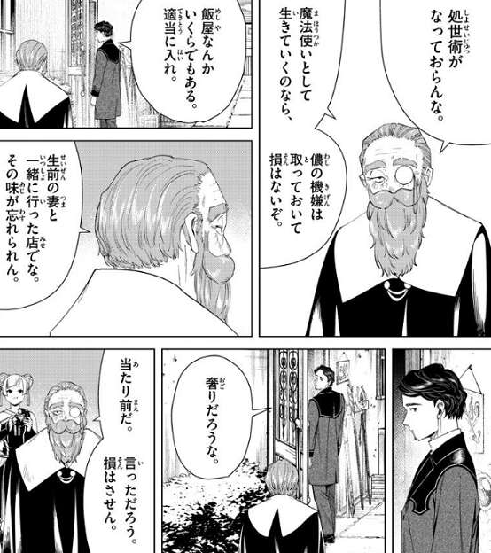 この時もフリーレンはすごい量の肉を頼み、一度にそんなに食べなくてもまた来ればいい、とヒンメルから言われます。そう思って二度と食べられなくなった味が沢山あるからね、とフリーレンが言うと、レッカーは、当店の味は後世まで残すつもりです、100年後も200年後も、と言いフリーレンに安心するように言います。しかし、フリーレンは料理人は皆そう言う、そう言って過去の料理の味を変えて爪痕を残そうとする、とつぶやきます。