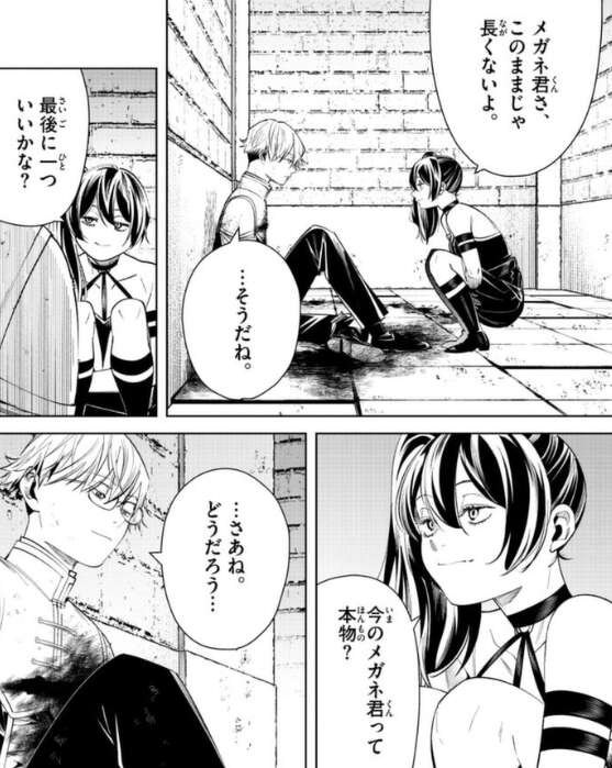 ユーベルは複製体が奪った脱出用のゴーレムの瓶を確認しますが、瓶は偽物でユーベルは重傷を負っていた瀕死のラントは魔法で作られた分身だと確信します。ラントは、瀕死のラントが魔法で作られた分身とわかっていたのなら、何故死に急ぐような真似をしたのかユーベルに質問します。