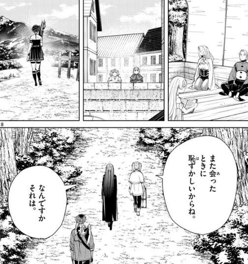 そんなヒンメルの話を思い浮かべながら、また会ったときに恥ずかしいからね、とフリーレンは言うと、なんですか、それは、とフェルンは答えます。