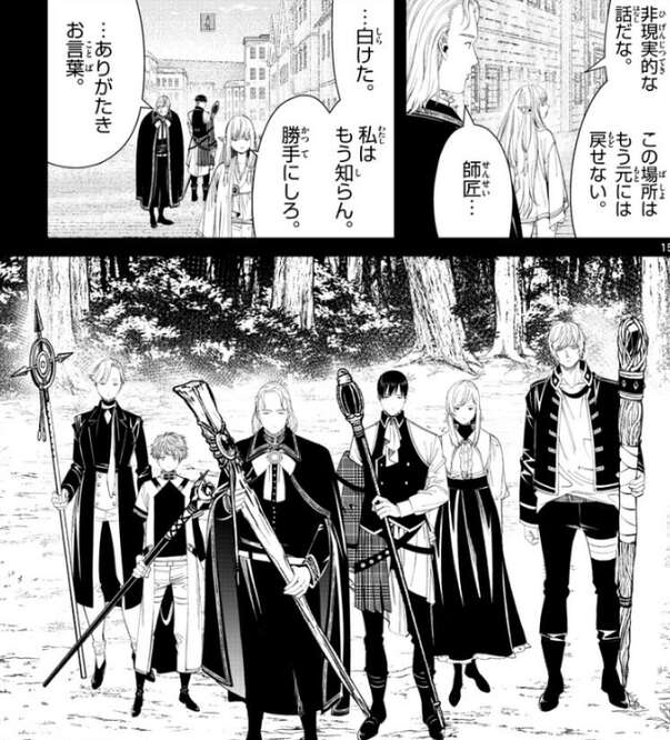 マハトは自分を封じている魔法を破ろうとしますが、一級魔法使い達はマハトを先に結界で封印しようとします。黄金郷を元に戻す方法が見つかるまで何十年でも、何百年でも、結界でマハトを封印しようとゼーリエの部達は考えますが、ゼーリエは非現実的な話だと言います。