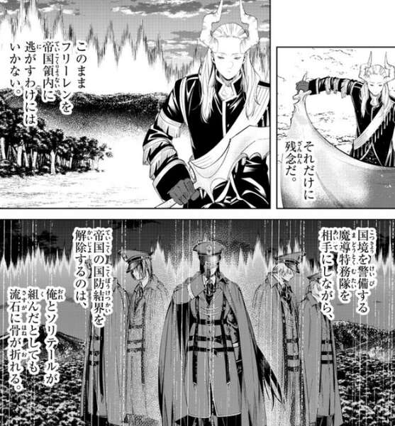 デンケンの実力がマハトの予想以上だったことに驚きつつも、マハトはデンケンとの戦いを楽しいと感じていました。しかし、同時にフリーレンを帝国領内に逃げすことは出来ず、マハトは残念にも感じていました。
