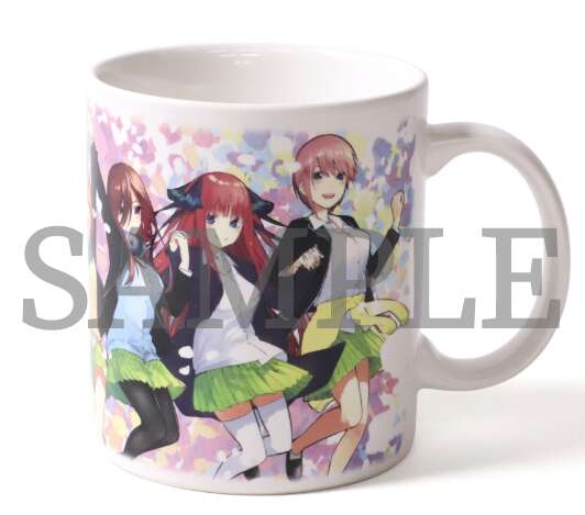 五つ子がジャンプしているイラストが使用してある、マグカップです。このイラストは33話で、連載時に巻頭カラーになったのを祝して描かれたイラストが元になっていますね。