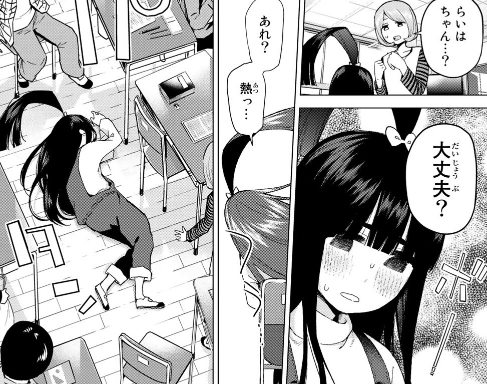 順調?に林間学校の準備が整ってきましたが、ここで妹のらいはちゃんが「あれ?熱っ…」と倒れてしまいます。これは林間学校に風太郎参加できないのでしょうか。