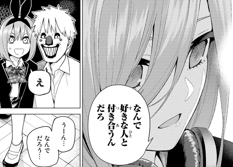 そこで突然三玖は「なんで好きな人と付き合うんだろう」とつぶやきます。