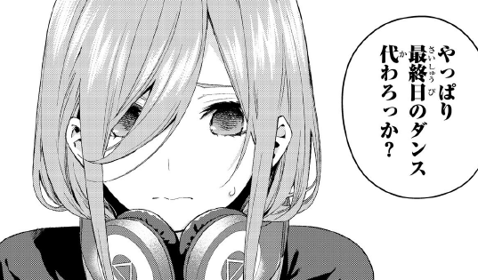 ただし風太郎は困ります。一花と二乃、二人とフォークダンスで踊るのは無理があります。