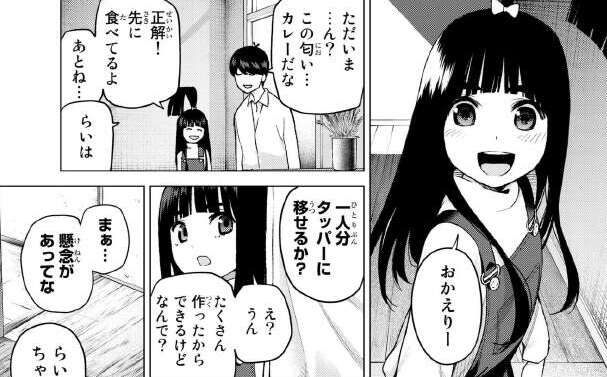 五月を心配しつつ、風太郎は自宅にいったん帰宅します。自宅では妹・らいはがカレーを作ってくれています。五月の為を思い、1人分をタッパーに移して欲しいと言います。