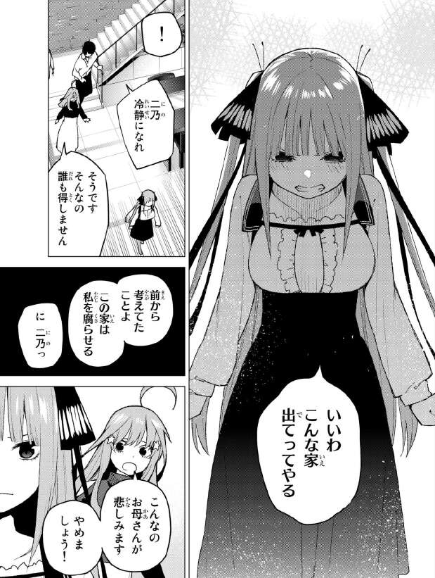 また二乃、五月ともに過去に何かあったような事を言っています。来週、五月の口からそのあたり全て語られるか気になります。