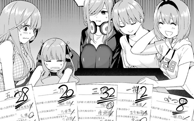 目標は5人の卒業です。馬鹿正直に全員相手にする必要がない事に気づいた風太郎は、テストで合格ラインを超えれば近づかないと提案します。
