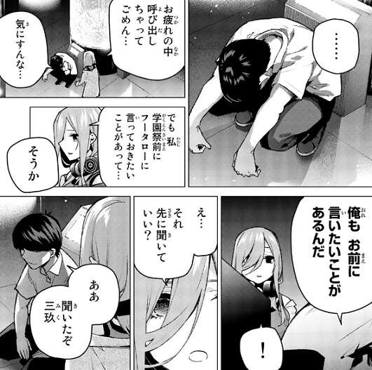 【ネタバレ】五等分の花嫁 105話 『最後の祭りが三玖の場合①』のネタバレ、感想