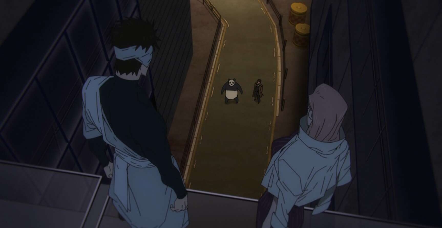 渋谷ストーム前で一般人の捜索をしている日下部とパンダですが、日下部は何としても地下5階には行こうとせず、パンダと捜索を続けようとします。パンダは地下五階に行こうと考えますが、日下部に説得されて再び一般人が残っていないか探しに行きます。そこに、夏油の仲間の呪詛師が現れます。