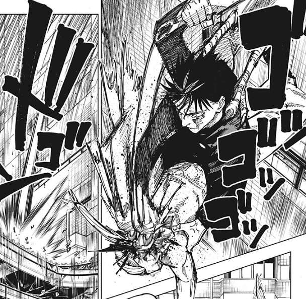 そして、鵺を使って落下している針千釣に連続で攻撃します。呪具を使った連続攻撃に、針千釣は重傷を負いますが、さらに伏黒は顔面に止めの一撃を加えて針千釣を殺します。