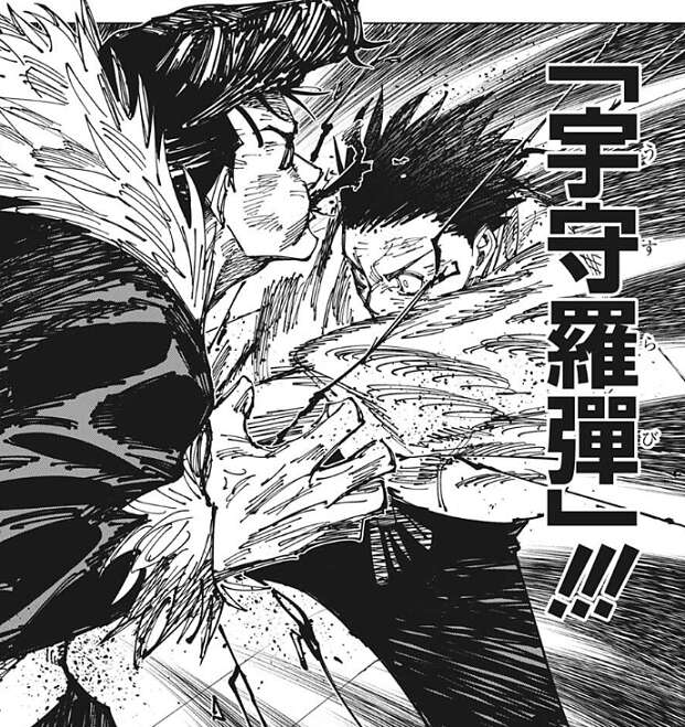 そして、「リカ」が烏鷺の左腕を口にくわえた時の事を石流は思い出し、あの時に術式をコピーする条件を満たしたのだと直感します。石流が術式の条件について考えている間に、乙骨は石流に近づき宇守羅彈(うすらび)をくらわせます。
