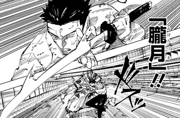 日下部は宿儺の傷ついている心臓を狙って、シン・陰流「朧月」という技を出します。折れた刀を使い、失った刀身は呪力で補って宿儺に攻撃します。