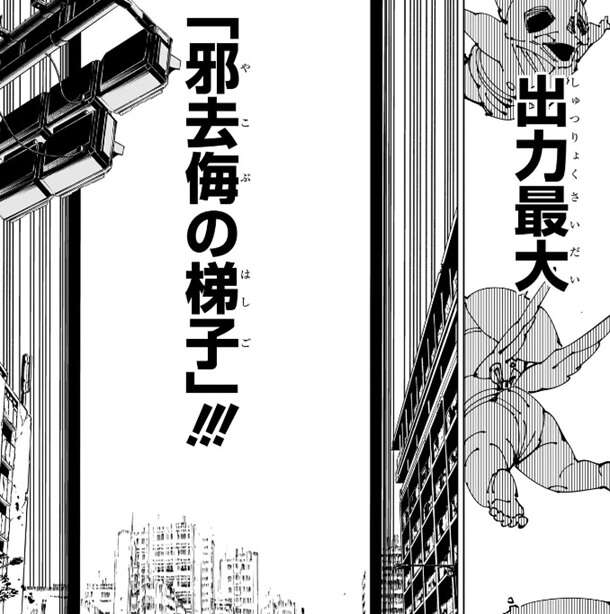 再び宿儺との決戦の場面に戻り、天使・来栖は出力最大の「邪去侮の梯子」を宿儺に放ちます。