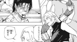 鹿紫雲一の水蒸気爆発をしのいだ秤は、鹿紫雲一に取引を持ちかけて仲間に引き込みます。宿儺と戦わせるという条件と引き換えに鹿紫雲一を仲間にした秤は、その後シャルル、西宮と合流します。西宮から追加予定のルールの話を聞いた流れで、真希が呪力を完全に持たない怪物に成った事を秤は聞きます。