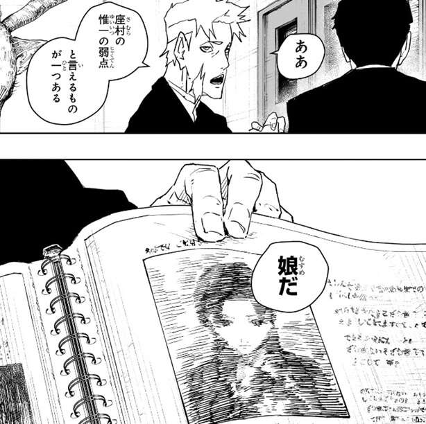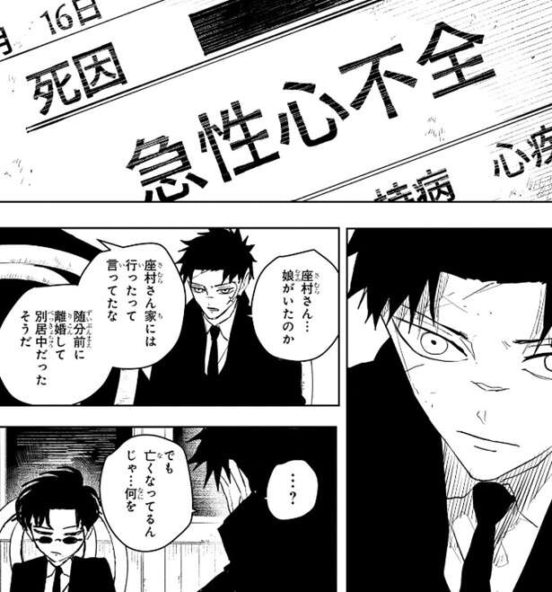 上層部の一人はこれが使えれば座村も意のままだったんだが、残念ながら二年と少し前に急性心不全で死んでいると話します。場面はチヒロと巻墨の会話に戻り、チヒロは座村に娘がいたのかと驚きます。巻墨は座村の家に行った時の話をし、随分前に離婚して別居中だったと言いますが、チヒロは、座村の娘は亡くなっているんじゃ…何を、と問いかけます。