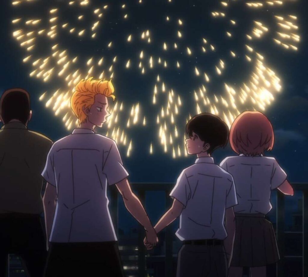ヒナの部屋で一緒に勉強していた武道は、屋上でヒナと一緒に花火を見に行きます。いいムードになり、武道はヒナと手を繋ごうとしますが、間違えてナオトと手を繋いでしまい、現代にタイムリープしてしまいます。