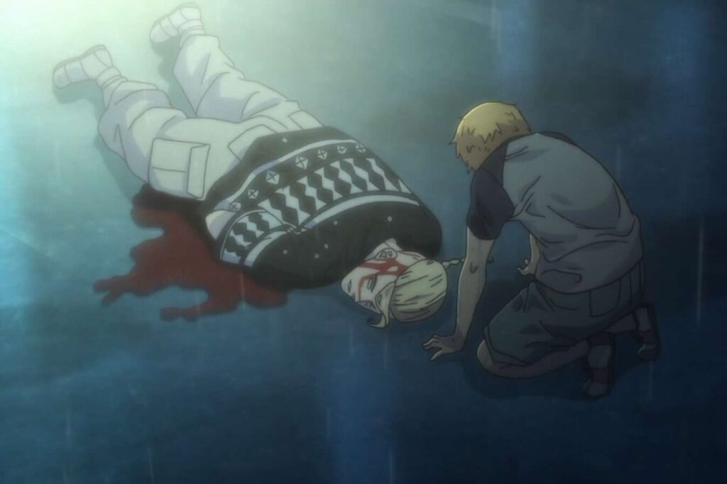 武道が振り返るとドラケンが倒れていて、ドラケンはキヨマサに刺された後でした。