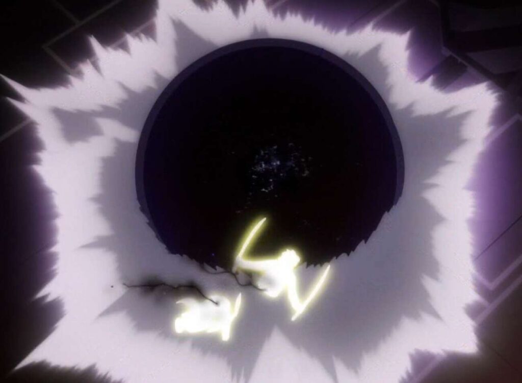 しかし、迅の予知で身体を真っ二つにされることは事前に知っていた太刀川はこの状況も想定内で、小南が急に振り返って太刀川とガトリンの方に向かい、太刀川ごとガトリンを真っ二つにします。