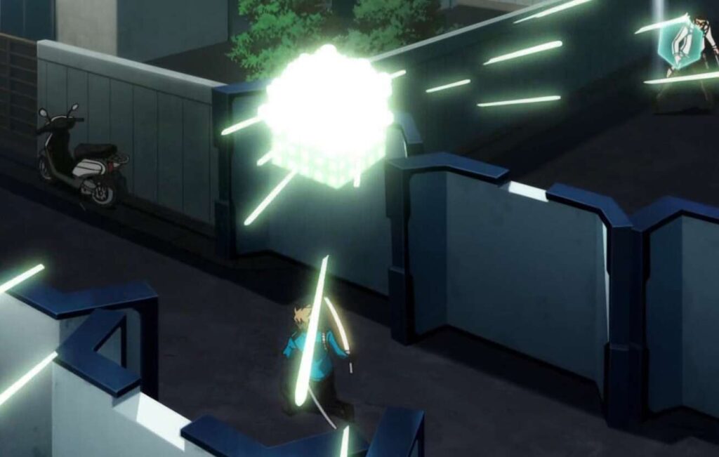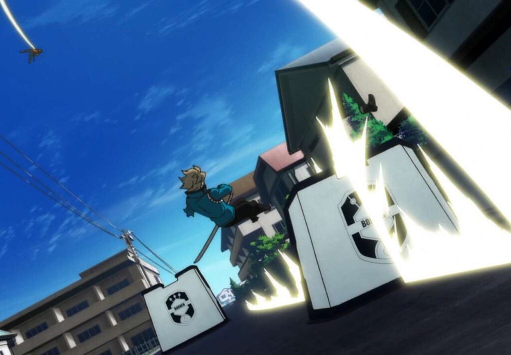 生駒が旋空弧月を使おうとした時、ヒュースはエスクードを使って生駒を宙に飛ばし、その隙に包囲網を抜けようとします。