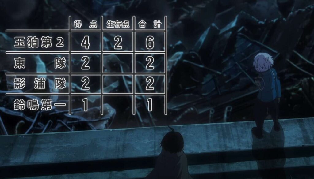 これでROUND7は試合終了となり、玉狛第2の勝利となります。最終スコアは玉狛第2が生存点を含めて6点を獲得します。