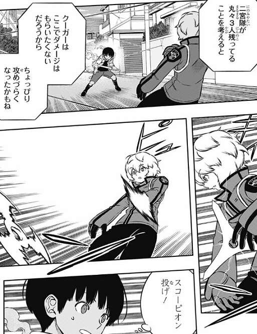 隊長の二宮が生駒に対して攻撃を加えてきました。これで、二宮隊は全員が揃い断然有利になりました。