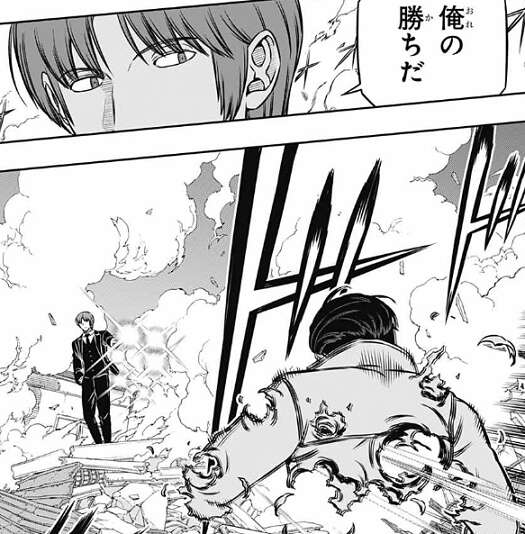 二宮は、一手の差だが…、俺の勝ちだ、と言うと、弓場にトドメをさして一騎打ちを制します。