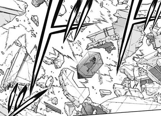 二宮隊が三雲と空閑の同時攻撃を防ぐと、今度は雨取が鉛弾(レッドバレット)で二宮を攻撃しますが、これも犬飼が左腕で直接防ぎます。雨取の位置が分かり、二宮が炸裂弾(メテオラ)で雨取を攻撃します。