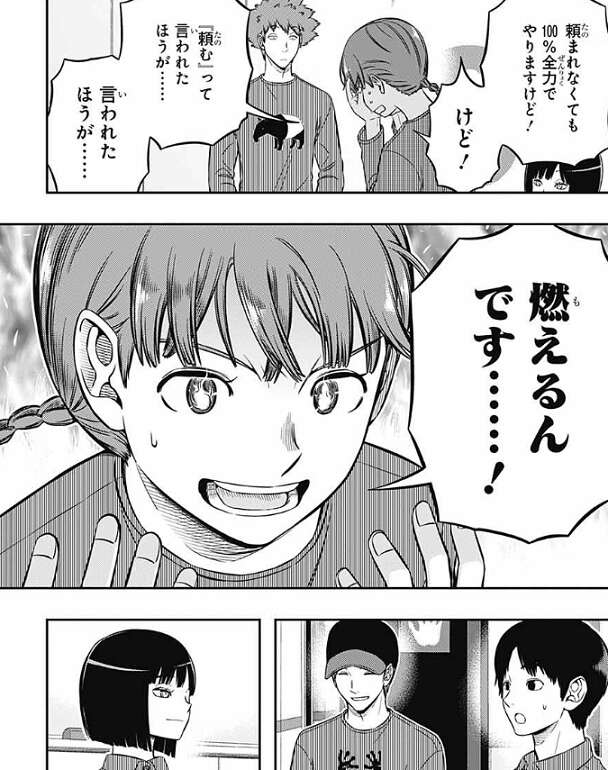 それを聞き、照屋は『頼む』……って言ってください、と顔を真っ赤にして水上に言います。