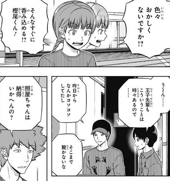 それでも樫尾は王子隊でなれているのか、ルールの確認からでしょうか?と、戦闘シミュに取り組もうとし、荒船もソフトのダウンロードからだな、と指示しますが、照屋は納得できずに、色々おかしいと言い、戦闘シミュに取り組む気になりません。