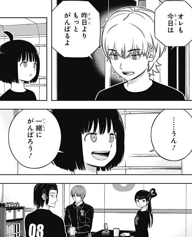 今回、二宮から鳩原失踪の真相を教えてもらい、絵馬は色々と悩むところはあるようです。しかし、遠征選抜試験の自力での突破にまずは集中するようで、雨取にも昨日よりもっとがんばる、と決意のようなものを伝えます。絵馬と二宮とのわだかまりも、少しは改善しそうな雰囲気です。