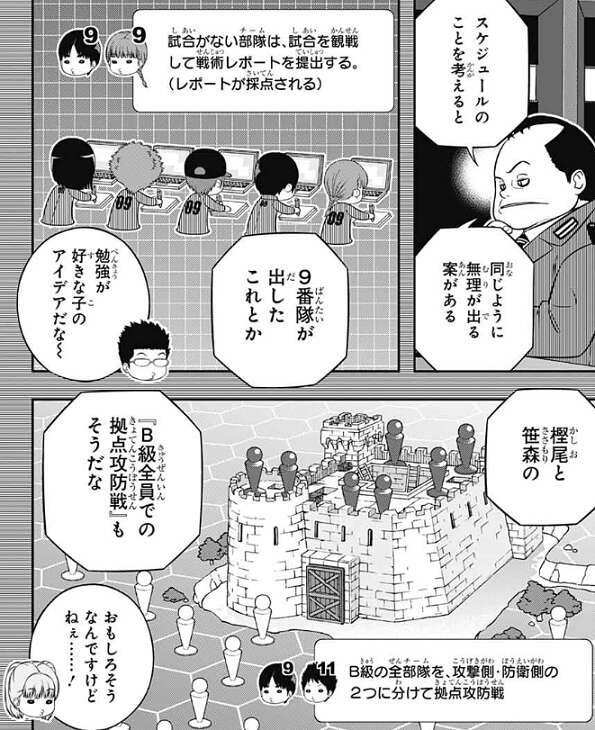 次回、諏訪7番隊はさっそくトリオン兵を作成してみますが、作成コストの制限で三雲は弱いユニットしか作れず苦戦します。